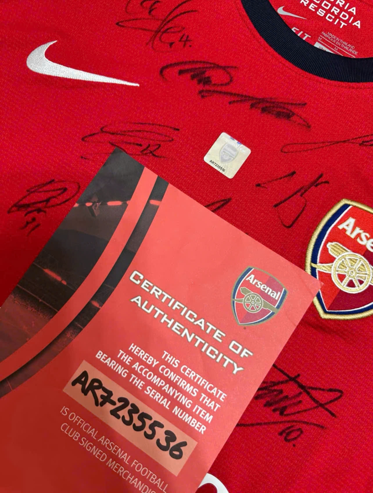 Được sản xuất chính thức bởi Câu lạc bộ bóng đá Arsenal, kèm theo giấy chứng nhận chính thức của Câu lạc bộ Arsenal. Logo khắc laser kép, hai mã chống hàng giả.