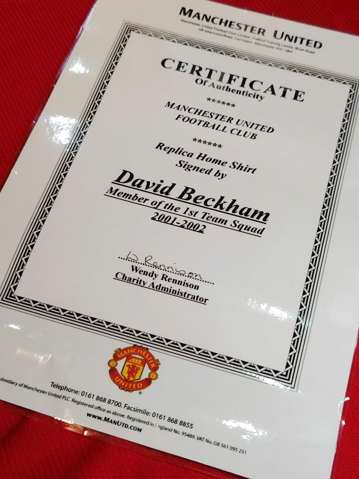 Áo đấu Manchester United 2001/2002 có chữ ký của Sir David Beckham