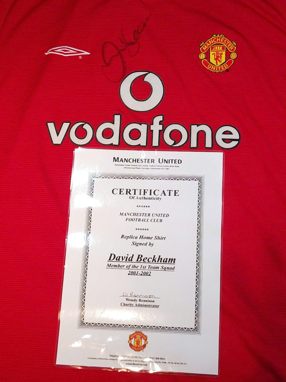 Áo đấu Manchester United 2001/2002 có chữ ký của Sir David Beckham